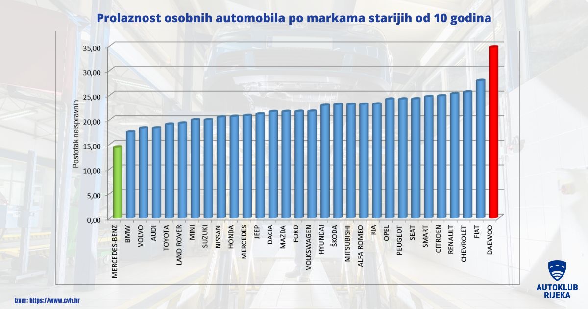 Zanimljivi su i podaci o prolaznosti prema markama vozila kad se gleda starost vozila. Tako statistika pokazuje da kad se radi o vozilima starijim od 10 godina, najbolju prolaznost imaju Volvo, Mazda i Nissan. Kad se radi o vozilima starijim od 10 godina, najbolje prolaze Mercedes, BMW i Volvo. Analizom su obuhvaćene marke osobnih automobila (M1 kategorija) kojih je bilo više od 2000 na redovnom tehničkom pregledu.