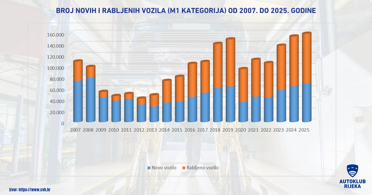 Detaljne statistike za 2025. godinu možete pronaći na stranicama Centra za vozila Hrvatske.